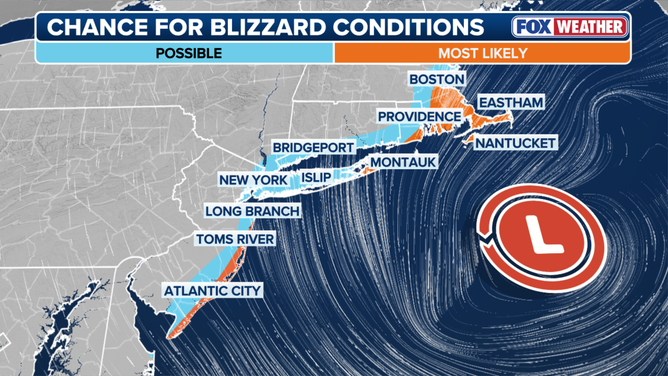 The FOX Forecast Center is monitoring the chances of blizzard conditions along the East Coast, all the way from Cape May, New Jersey through Boston.
